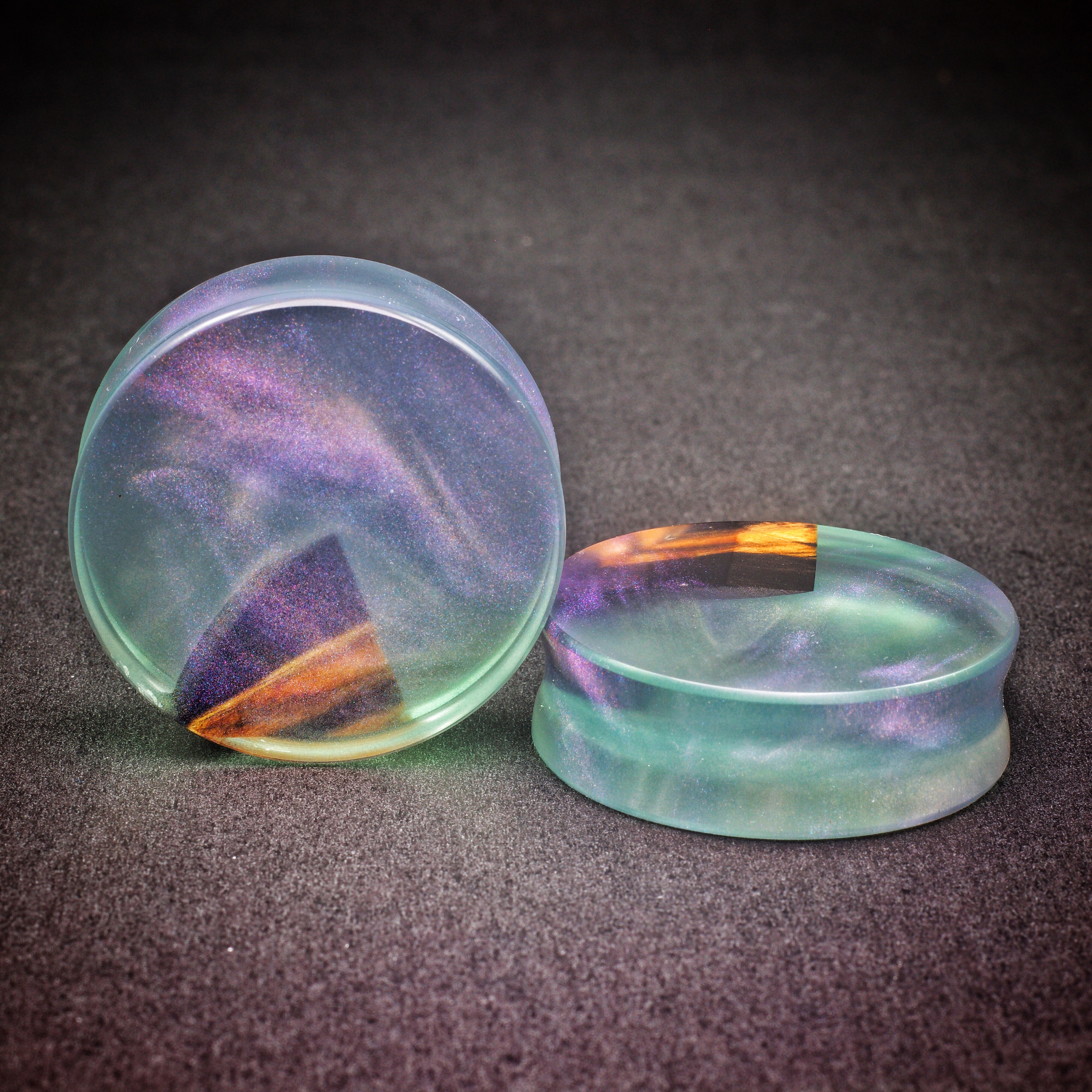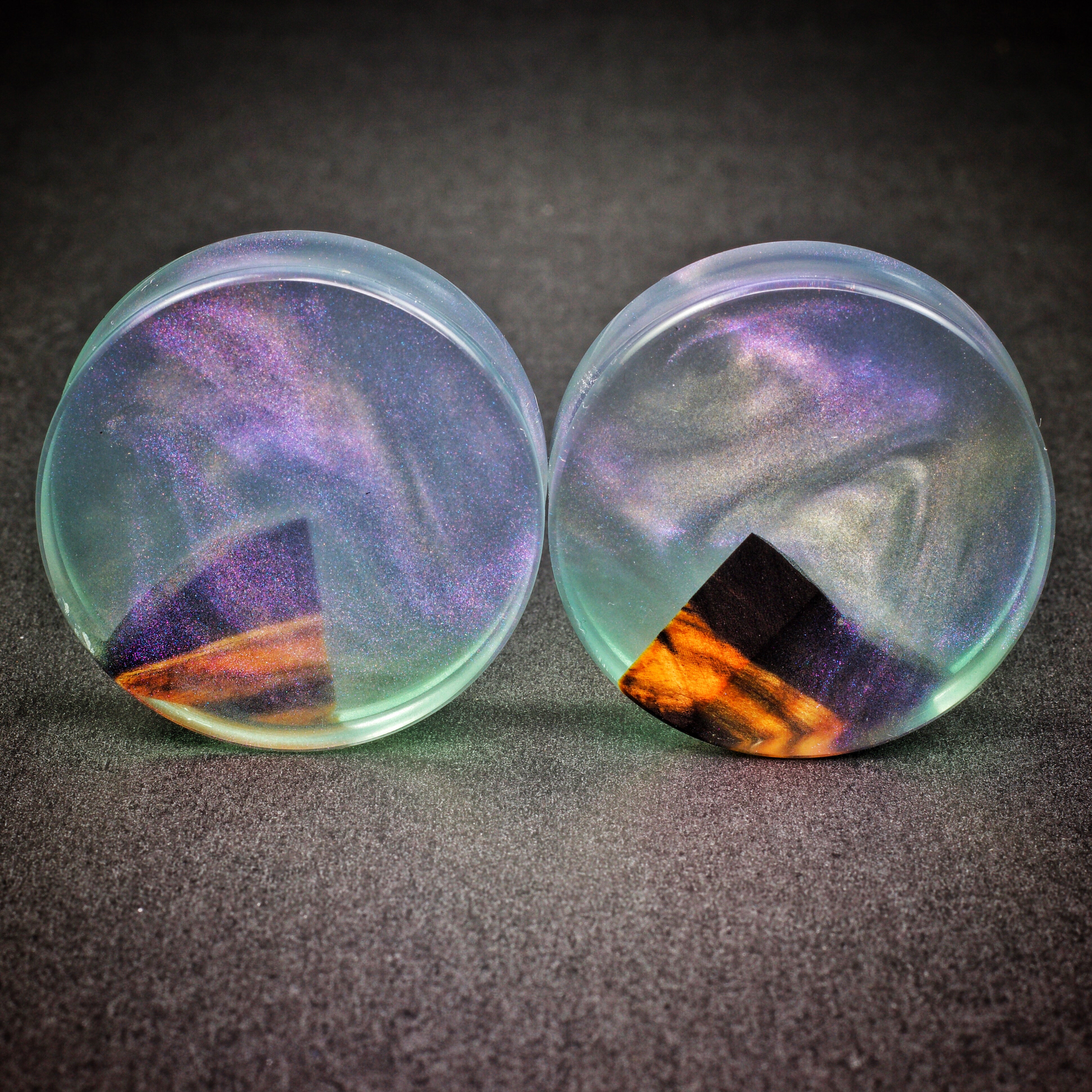 I handmake each pair of resin plugs from start to finish in my shop from pouring the resin blanks to polishing to a prestine glass finish. Every pair is a unique one off color and wood combo that won't be recreated again. What you see in the picture is the exact pair you will receive.