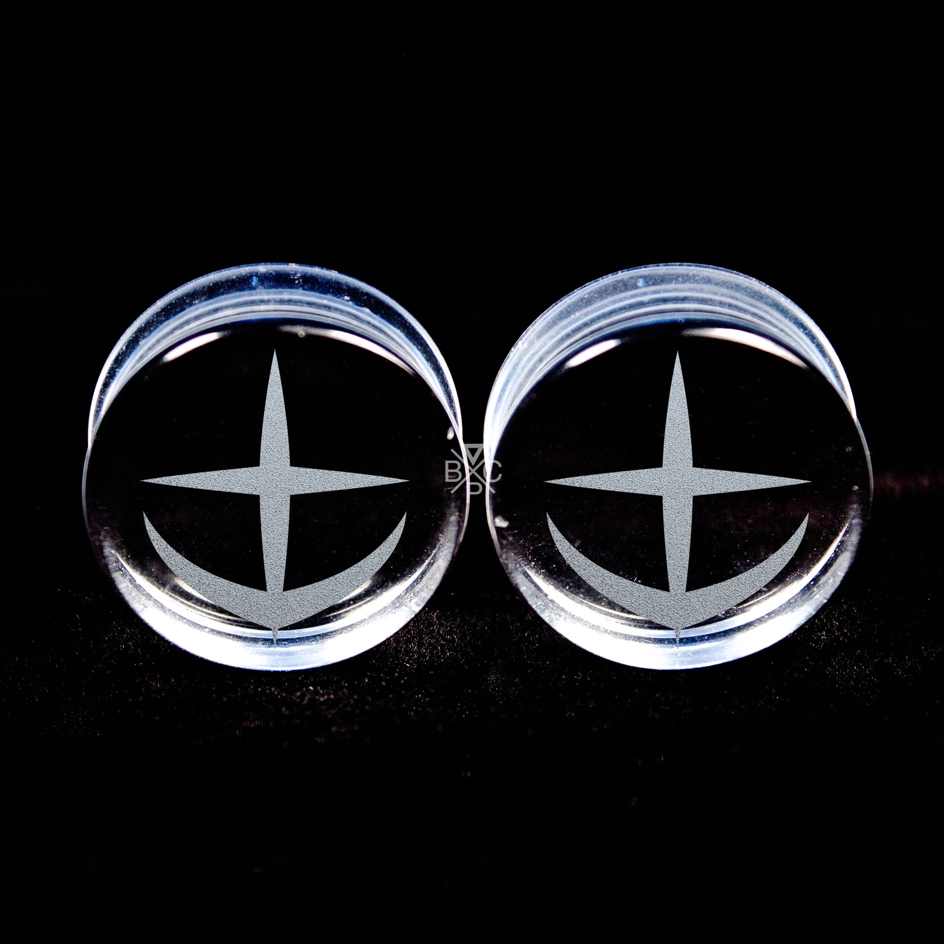 These Clear Glass plugs have a laser engraved All Seeing Eye with amazing contrast and are a great pair for anytime of year