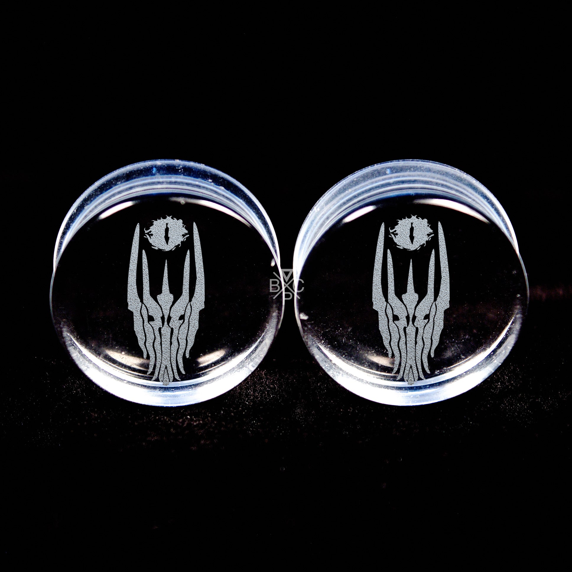 These Clear Glass plugs have a laser engraved the Eye of Sauron Logo with amazing contrast and are a great pair for anytime of year