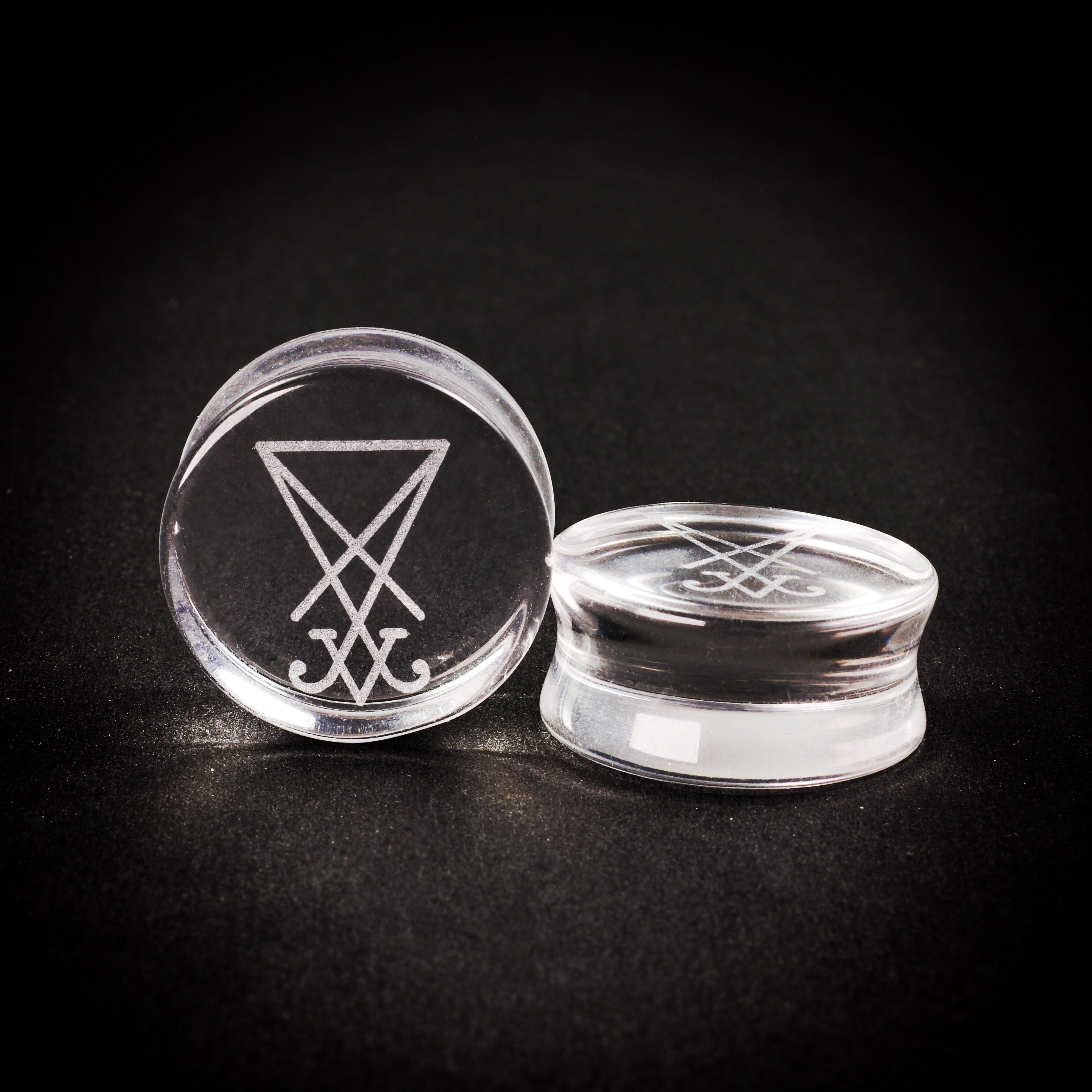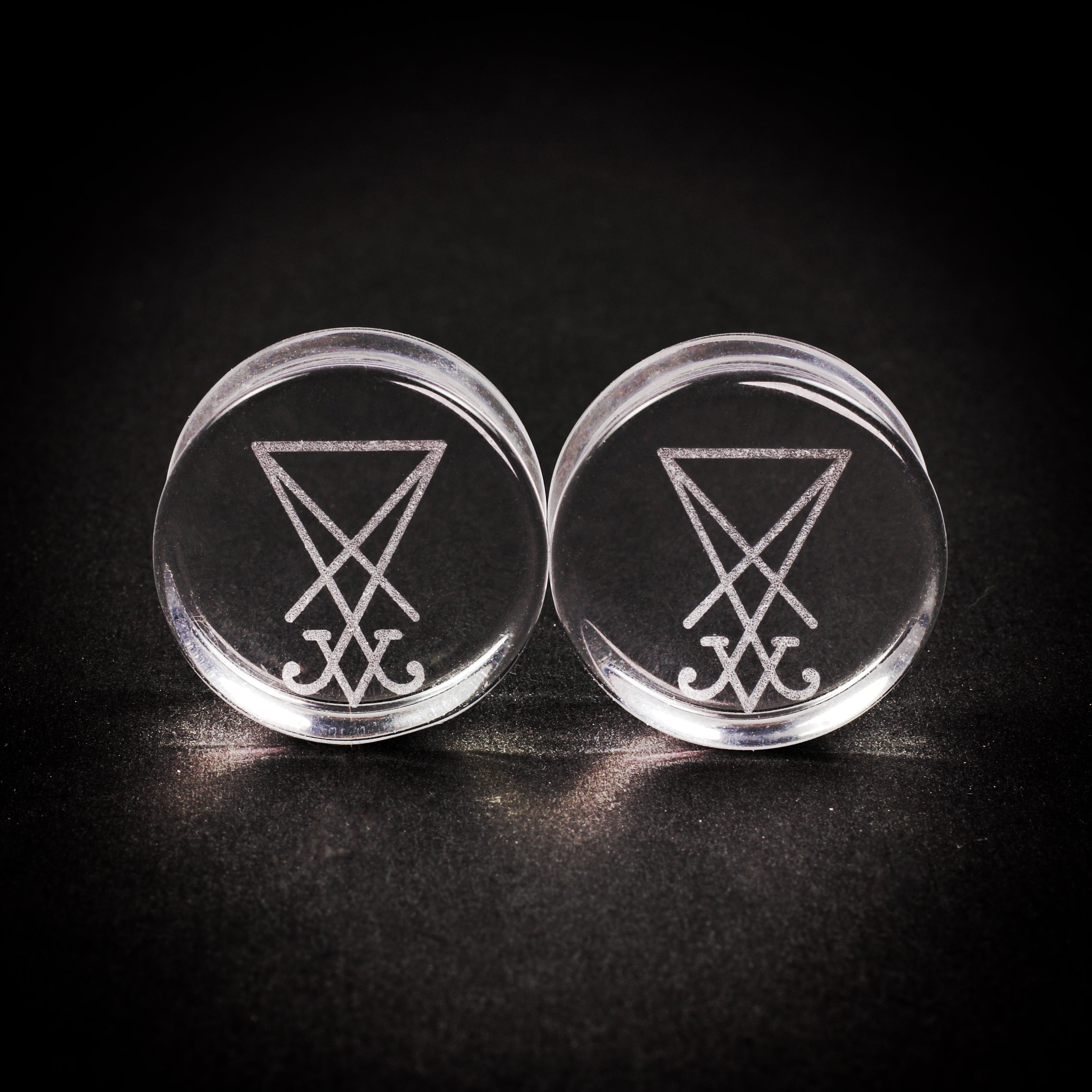 These Clear Glass plugs have been laser engraved with the Sigil of Lucifer with amazing contrast and are a great pair for anytime of year