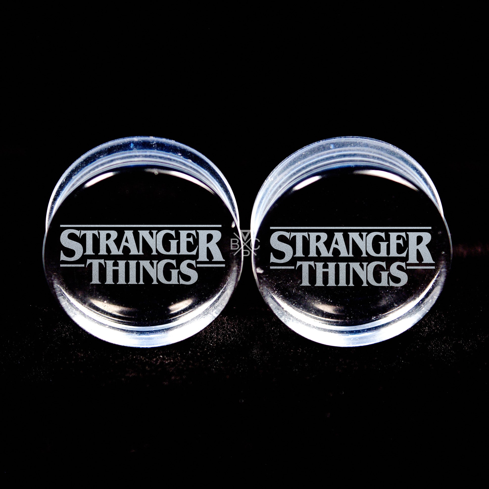 These Clear Glass plugs have a laser engraved Stranger Things Logo with amazing contrast and are a great pair for anytime of year